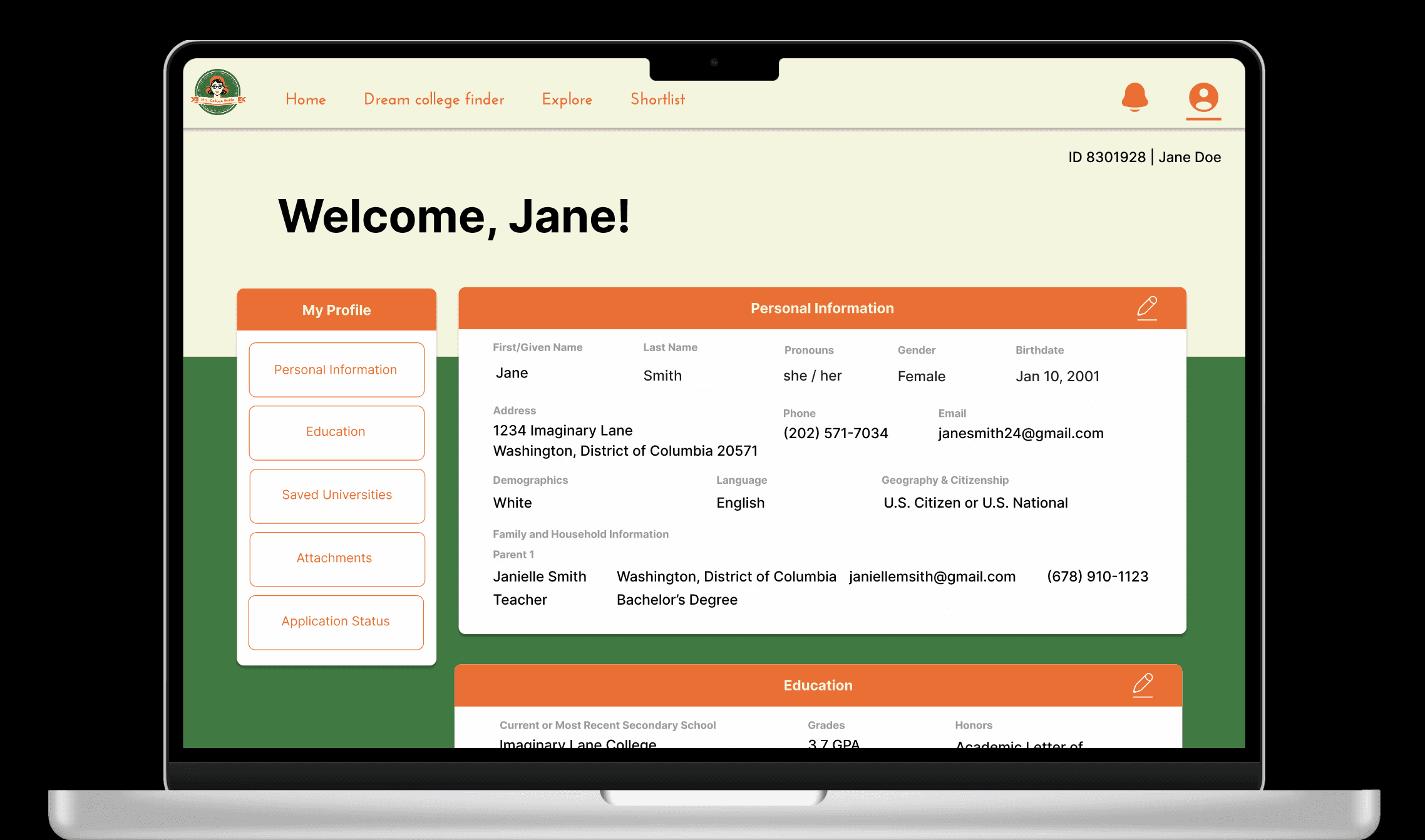 My team theorized a college application platform that emphasizes simplicity and ease so preparing for higher education can be less stressful. The design incorporates colors that enforce an academic and explorative aesthetic while providing an array of options and interactions for students to find their perfect school.